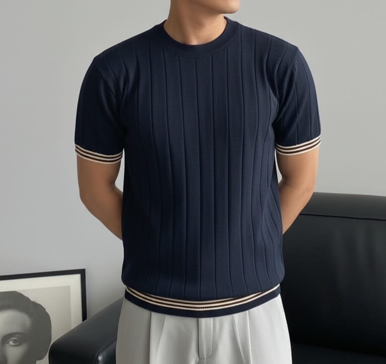 Round neck Blue, sharp look